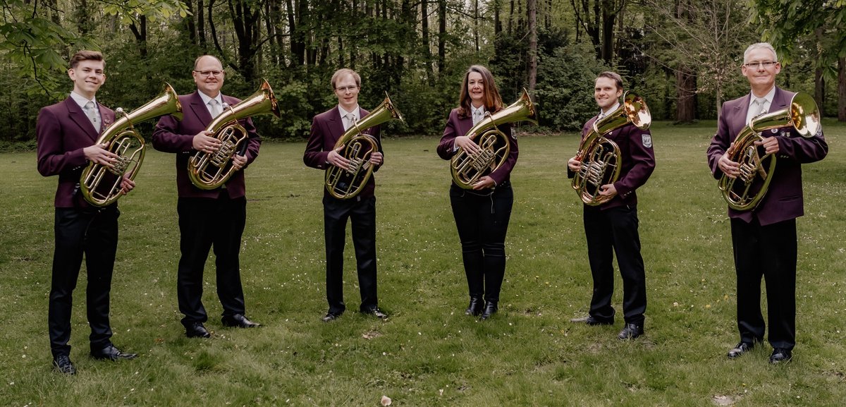 wir sind das Tenor-/Baritonhornregister des „BoBWe“: (v.l.) Laurenz, Patrick, Michael, Carde, Andre, Harald und (nicht auf dem Bild) Reinhold .