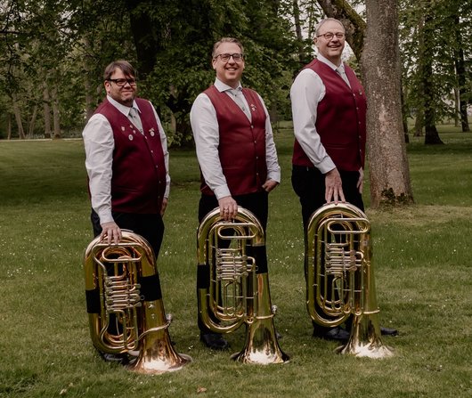 Egal, wie man’s dreht, unsere großen, starken Tubisten (v.l).: